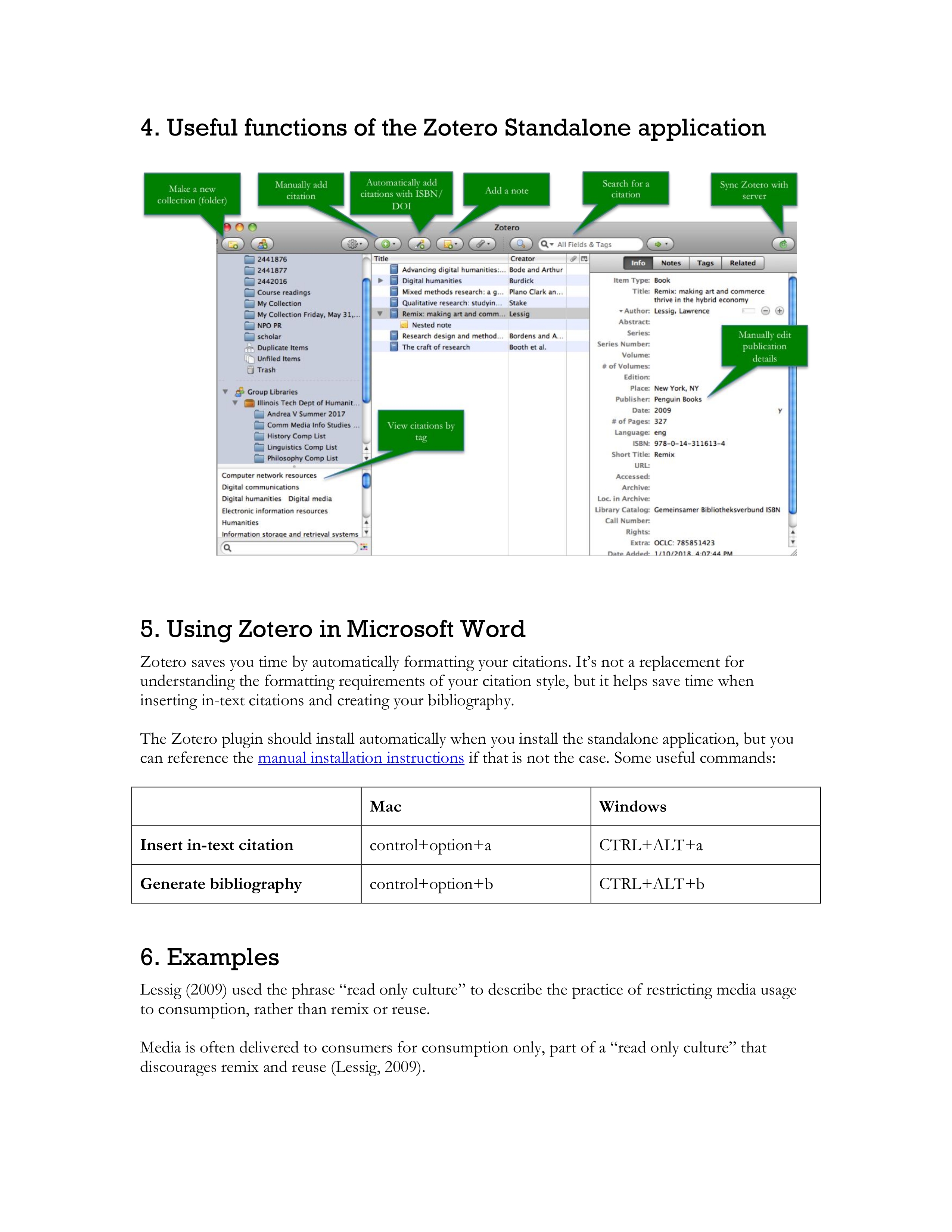 Excerpt from guide to using Zotero standalone with labeled UI.