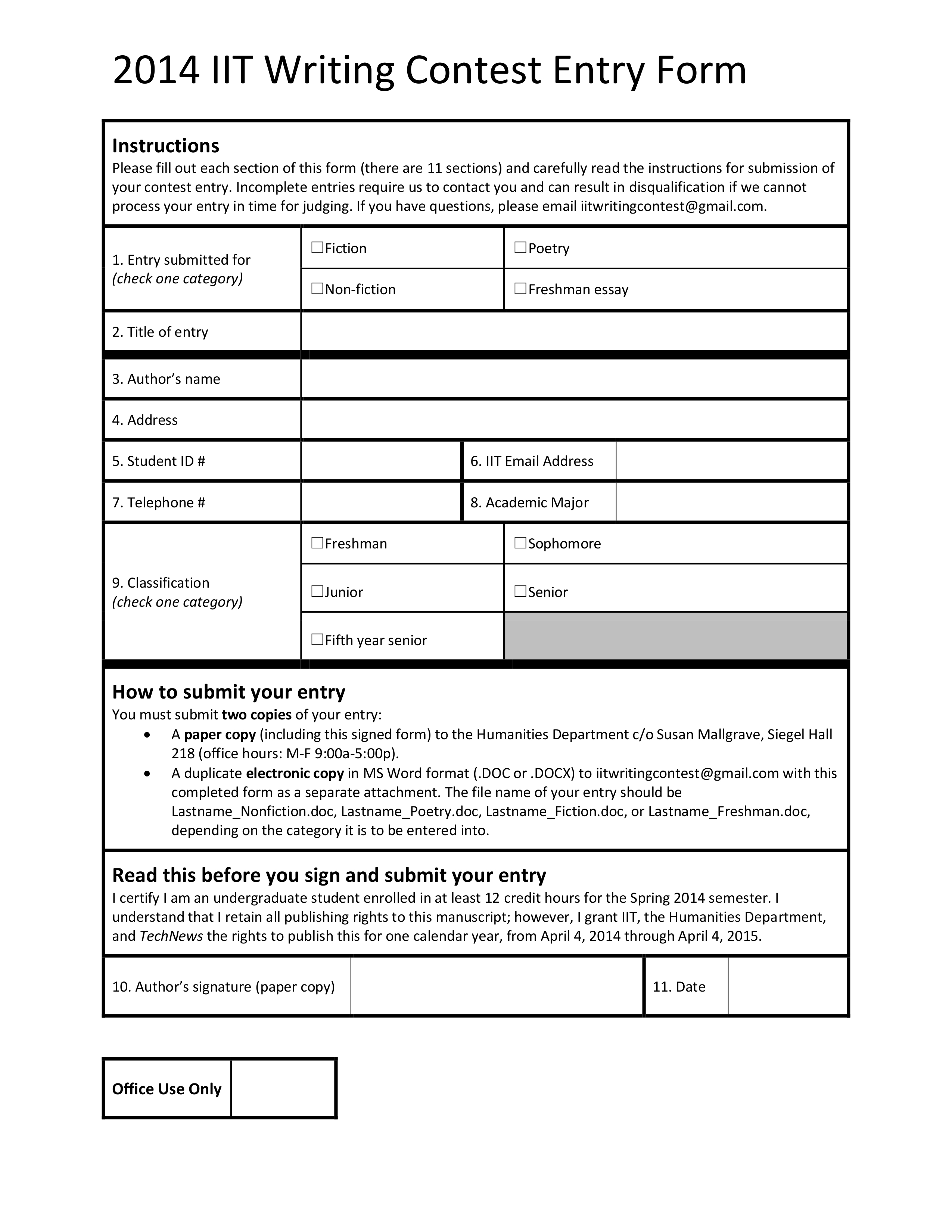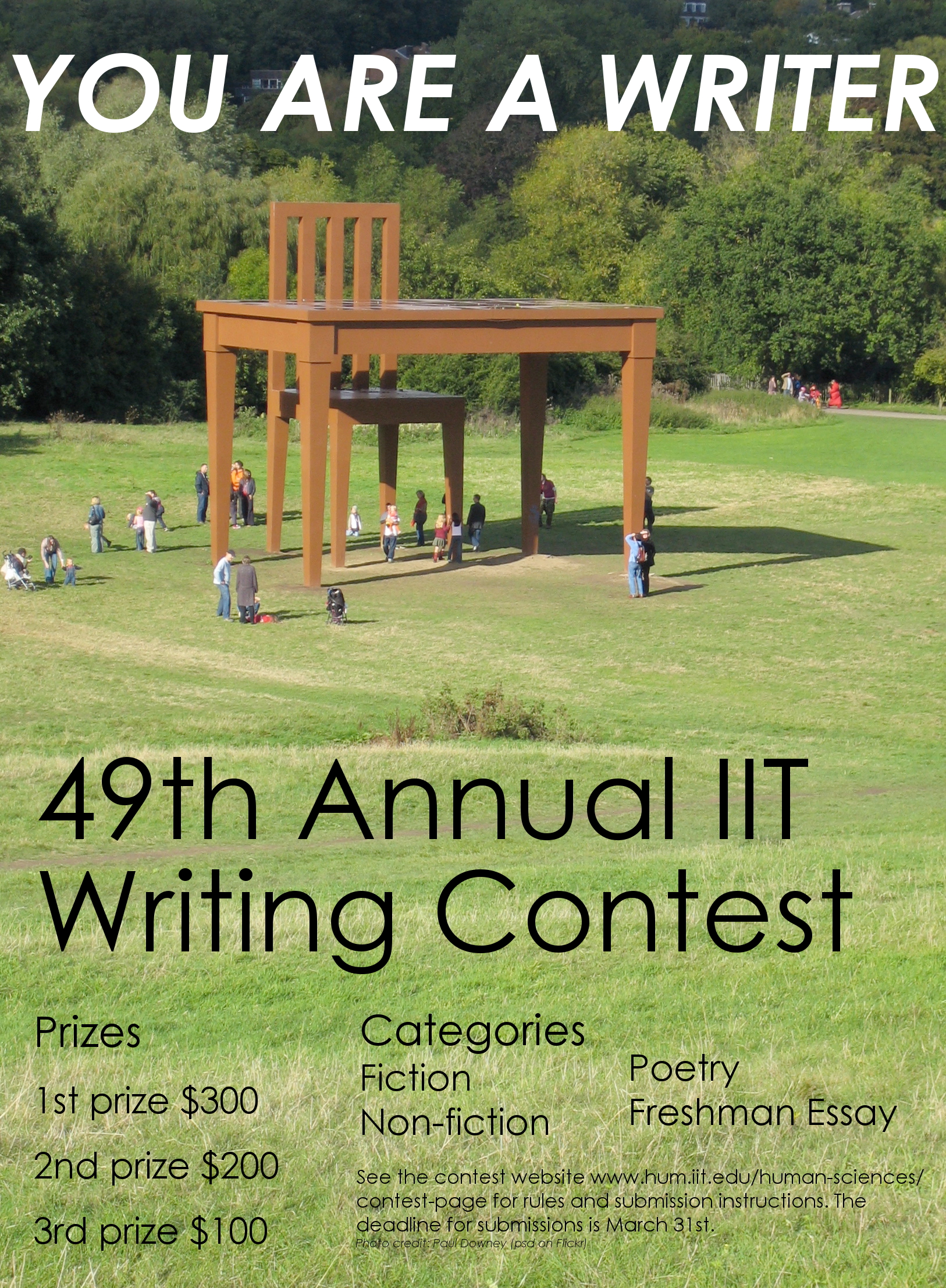 Bulletin board ad for writing contest. Actual size: tabloid.